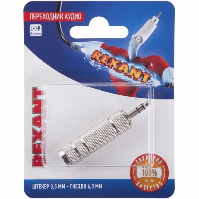 Переходник аудио REXANT штекер 3.5 мм стерео - гнездо 6.3мм стерео металл 06-0167-A