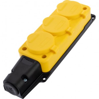 Розетка REXANT IP54 штепсельная трехместная 16 А каучук желтая
